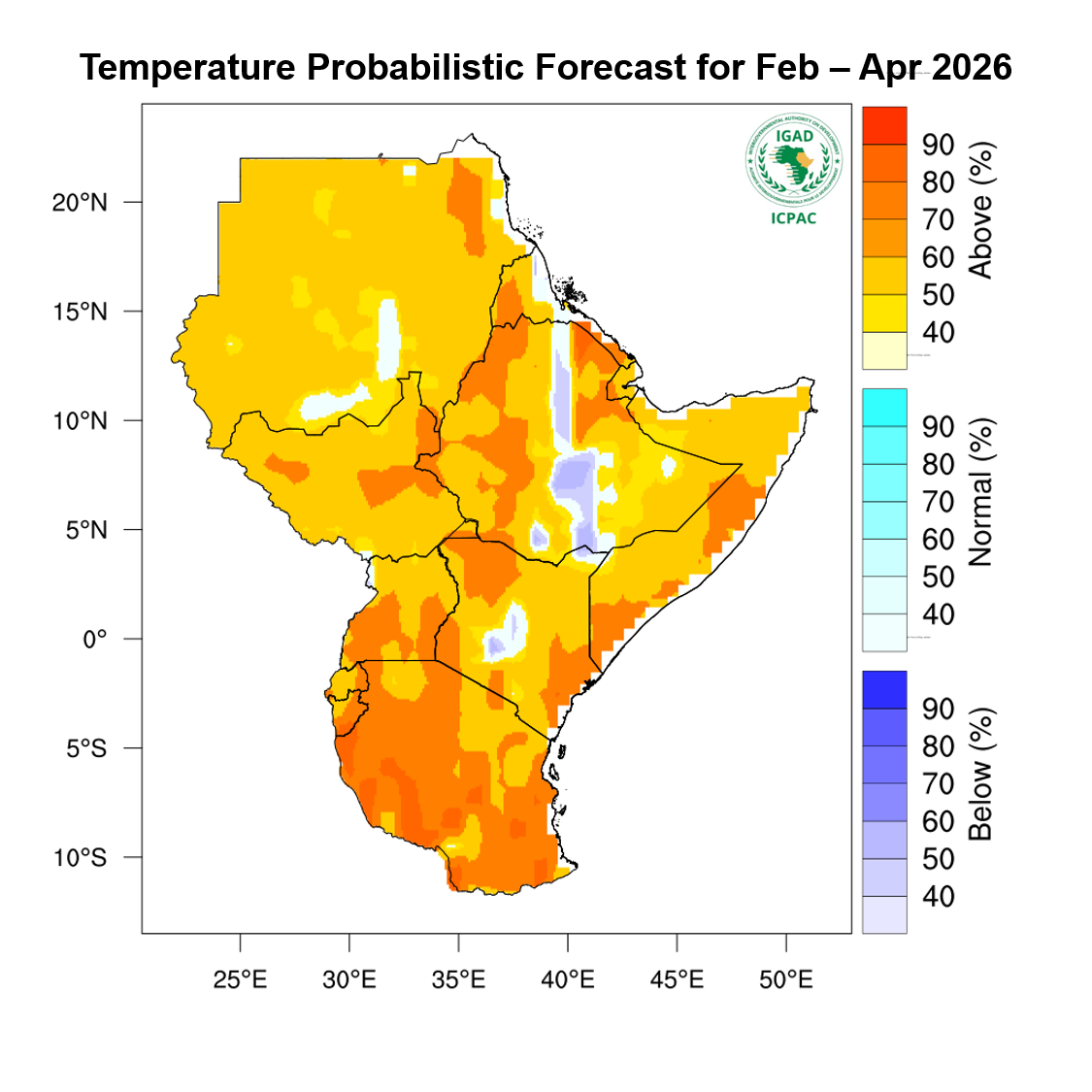 - Cooler than usual conditions expected over central areas of Ethiopia and central Kenya.