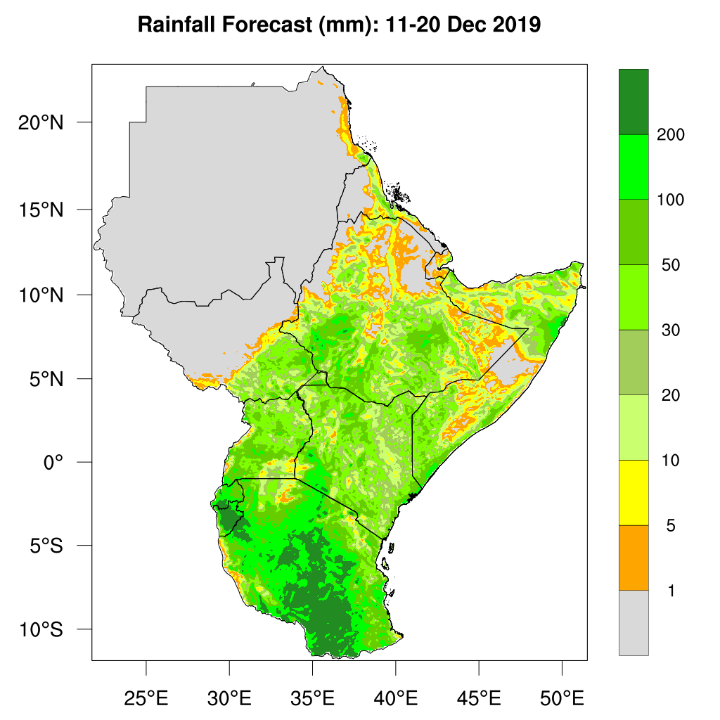 - Moderate to high rainfall 50mm or above expected over much of Kenya, Uganda, Rwanda, Somalia, south eastern parts of South Sudan, much of Ethiopia and Tanzania.