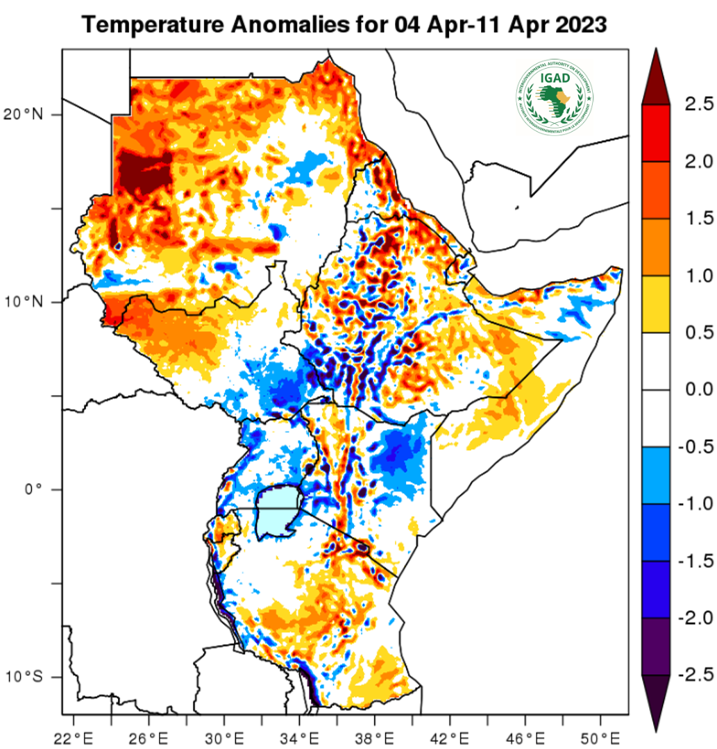- Warmer than usual temperatures forecast over most parts of Sudan, northern South Sudan, central parts of Somalia, eastern and northern Ethiopia, parts of central and southern Tanzania.