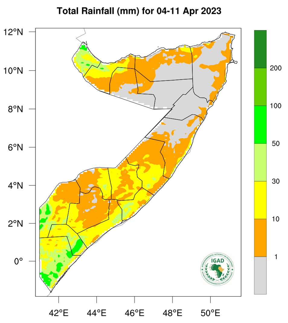 - Light rainfall predicted over parts of southern, central and northern Somalia.