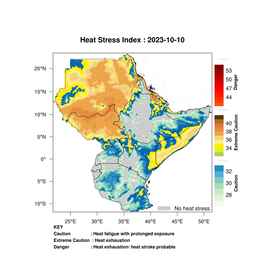- Elevated levels of heat stress expected in South Sudan, Sudan, coastal Eritrea, eastern Kenya and southern Somalia.