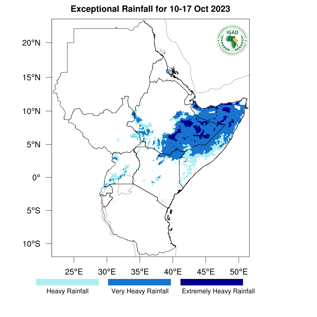 - Extremely heavy rainfall expected in parts of south-eastern Ethiopia and northern Somalia.