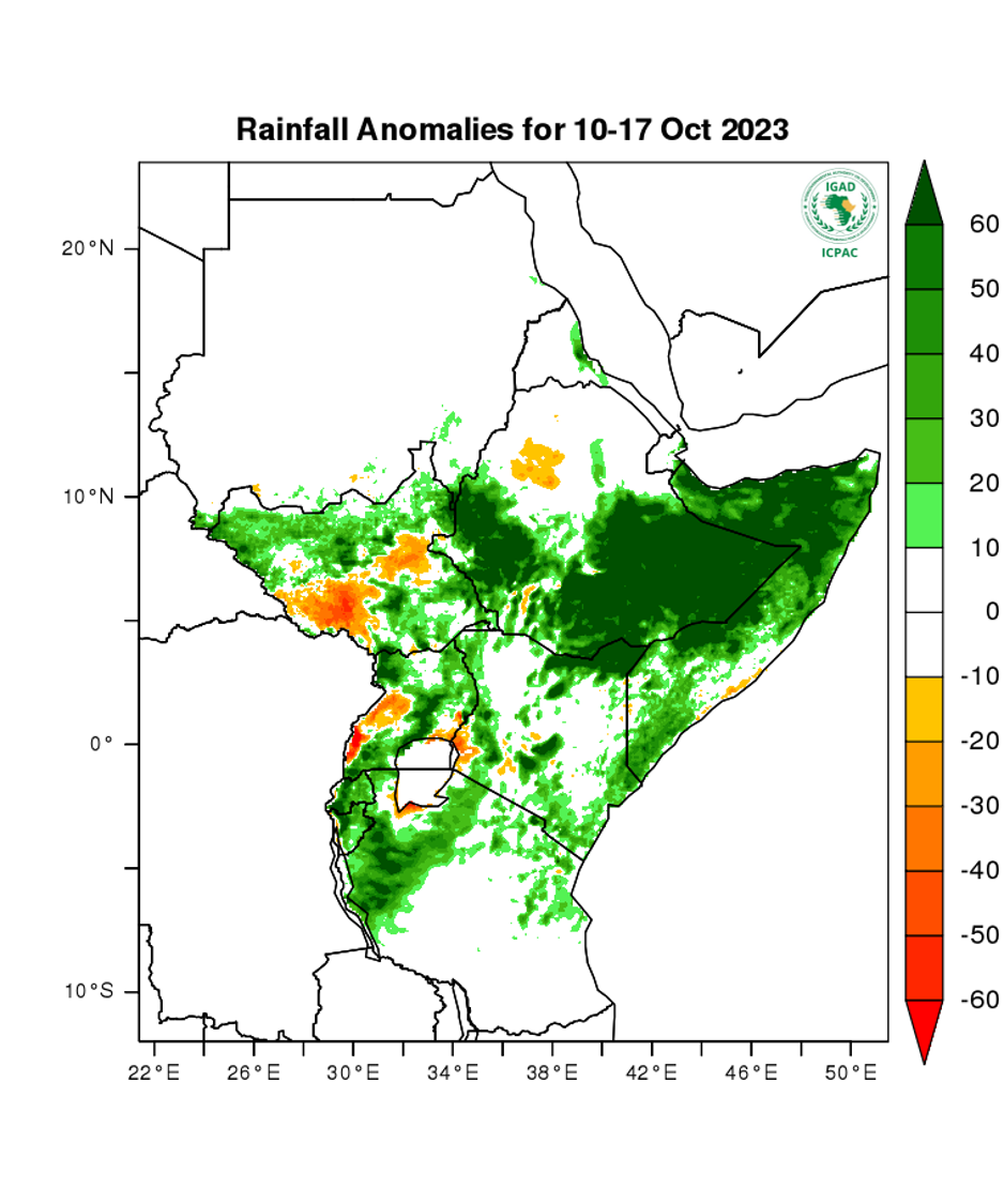 - Wetter than usual conditions expected over southern Ethiopia, northern and south-eastern South Sudan, most parts of Uganda, Rwanda, Burundi, northern Tanzania, and most parts of Somalia.
