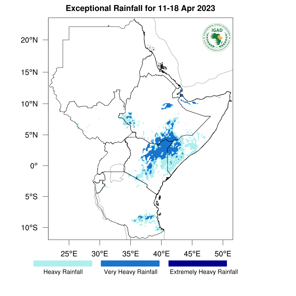 - Heavy to very heavy rainfall (top 10%-5%) rainfall expected over north-eastern and central parts of Kenya, isolated areas over parts of south-eastern, western and northern Ethiopia, southern Somalia and isolated areas in southern parts of Tanzania.