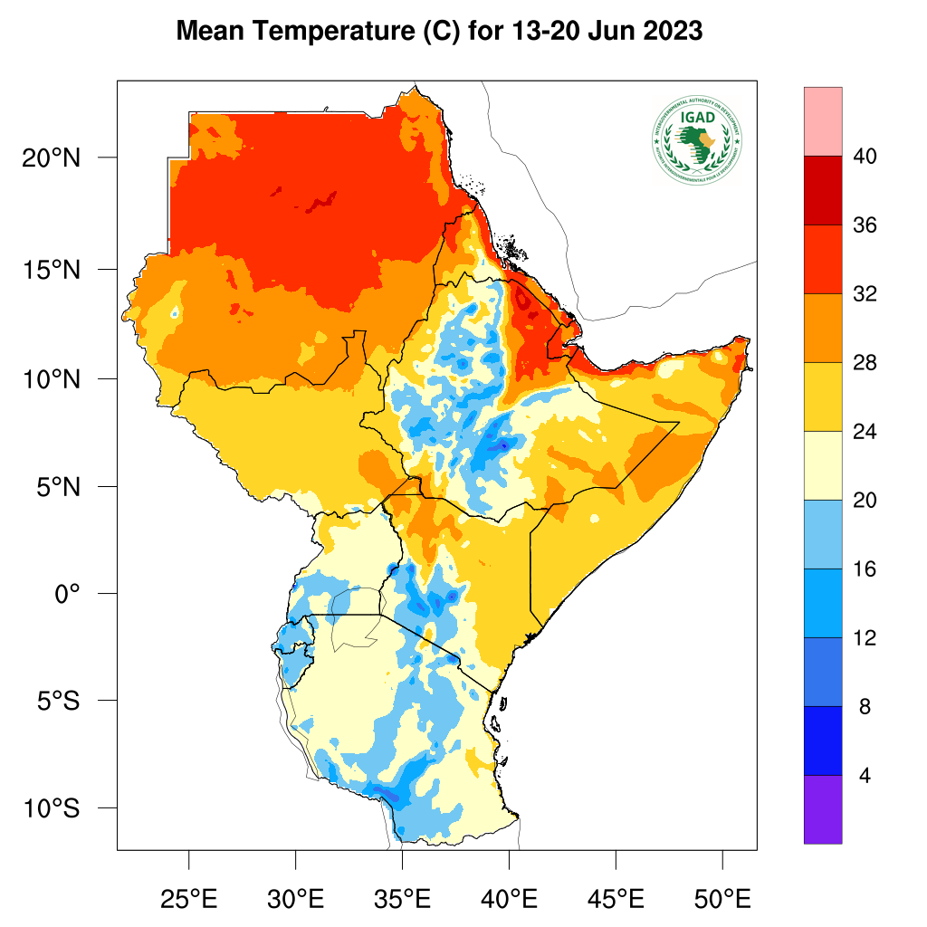 - Moderate to high temperatures (20 - 32℃) expected over South Sudan, eastern and northern Kenya, western and eastern Tanzania, Somalia, south-eastern Ethiopia, and central to northern Uganda.