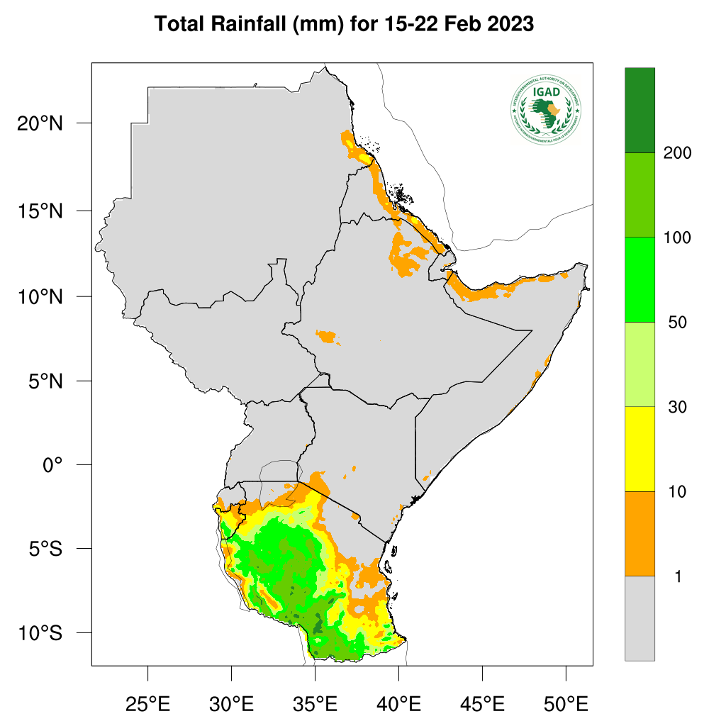 - Dry conditions expected over most parts of Sudan, South Sudan, Ethiopia, Eritrea, Djibouti, Somalia, Uganda, Kenya, and Rwnada.