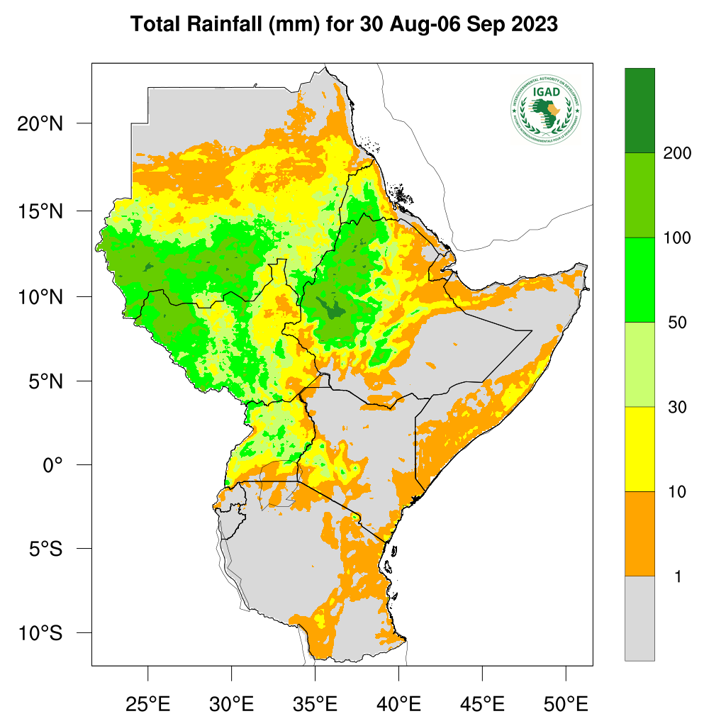 • Wetter than usual conditions expected over southern Sudan, western Eritrea, northern and western Ethiopia, and a few regions in eastern and north-western South Sudan.