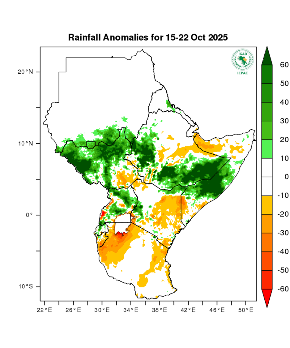 - Light rainfall (less than 50 mm) expected in parts of eastern and western Tanzania, southern and eastern Kenya, northern Somalia, south-eastern South Sudan and southern regions of Sudan.